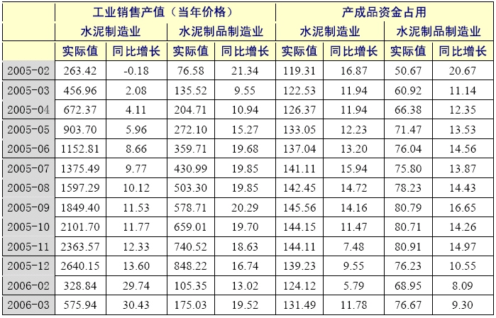 2006年1季度水泥制造業(yè)各項銷售指標與去年相比有較大好轉。1季度,水泥制造業(yè)實現(xiàn)工業(yè)銷售產值575.94億元,同比增長30.43%,增速比上年同期上升了28.35個百分點。1季度末,產成品資金占用為131.49億元,同比增長11.78%,增速比上年同期下降了0.16個百分點。 1季度,水泥制品制造業(yè)實現(xiàn)工業(yè)銷售產值175.03億元,同比增長19.52%,增速比上月快6.5個百分點;產成品資金占用同比增長9.3%,增速比上月快1.21個百分點。