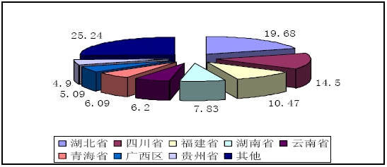 2006年1-6月水力發(fā)電分省結(jié)構(gòu)