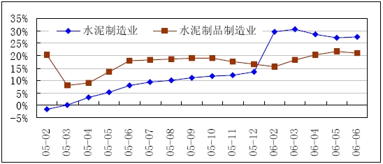 2006年1-6月,水泥制品制造業(yè)累計工業(yè)總產(chǎn)值為463.84億元,同比增長20.97%,增幅比上年同期上升3.07個百分點;實現(xiàn)產(chǎn)品銷售收入427.52億元,同比增長22.86%,增幅比上年同期上升6.19個百分點。