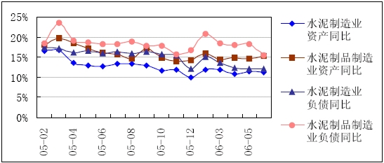2006-2006年水泥制造業(yè)和水泥制品制造業(yè)資產(chǎn)、負(fù)債同比增長(zhǎng)情況