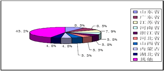 2006年1-9月火力發(fā)電分省構(gòu)成