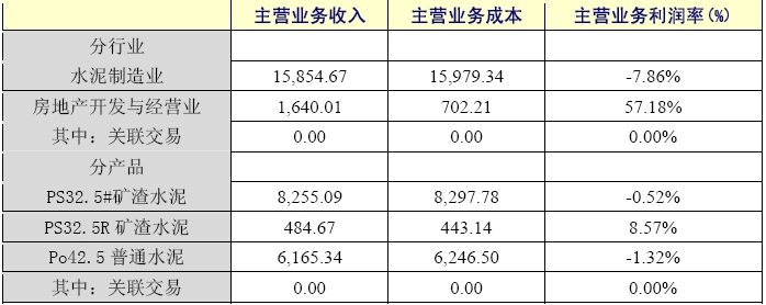 2006年1-9月,天津水泥股份有限公司累計(jì)生產(chǎn)水泥96.7萬(wàn)噸,比上年同期增加16.7萬(wàn)噸,同比增長(zhǎng)20.88%;水泥銷(xiāo)量累計(jì)80.8萬(wàn)噸,比上年同期增加16.5萬(wàn)噸,增長(zhǎng)25.66%;另一項(xiàng)主業(yè)房地產(chǎn)開(kāi)發(fā)收入為1640萬(wàn)元,同比減少1672.8萬(wàn)元,下降50.5%。 由于水泥主業(yè)產(chǎn)銷(xiāo)規(guī)模增長(zhǎng),使三季度的主營(yíng)業(yè)務(wù)收入同比略有增加,1-9月實(shí)現(xiàn)主營(yíng)業(yè)務(wù)收入17494.7萬(wàn)元,比上年同期增加698.7萬(wàn)元,增長(zhǎng)4.16%。其中:水泥產(chǎn)品銷(xiāo)售收入15854.7萬(wàn)元,同比增加2371.7萬(wàn)元,增長(zhǎng)17.59%;房地產(chǎn)開(kāi)發(fā)收入1640萬(wàn)元,同比減少1672.8萬(wàn)元,下降50.5%,主要因新開(kāi)發(fā)項(xiàng)目尚未完全形成銷(xiāo)售所致;1-9月實(shí)現(xiàn)主營(yíng)業(yè)務(wù)利潤(rùn)為813萬(wàn)元,比上年同期減少113萬(wàn)元,下降12.2%,其中:水泥產(chǎn)品銷(xiāo)售利潤(rùn)為虧損125萬(wàn)元,同比增虧78萬(wàn)元,主要是因產(chǎn)品結(jié)構(gòu)調(diào)整導(dǎo)致平均售價(jià)同比下降幅度高于平均成本同比下降幅度。由于公司報(bào)告期內(nèi)主營(yíng)業(yè)務(wù)利潤(rùn)偏低,期間費(fèi)用同比增加,承擔(dān)期間費(fèi)用后的營(yíng)業(yè)利潤(rùn)為虧損2688.4萬(wàn)元,同比增虧726萬(wàn)元;由于報(bào)告期內(nèi)公司取得的補(bǔ)貼收入1468萬(wàn)元,抵補(bǔ)了部分營(yíng)業(yè)利潤(rùn)的虧損,使公司1-9月實(shí)現(xiàn)利潤(rùn)為虧損1188萬(wàn)元,比上年同期增虧438萬(wàn)元,增幅為58.4%;公司1-9月凈利潤(rùn)為虧損1194萬(wàn)元,同比增虧262萬(wàn)元,增幅28.15%。