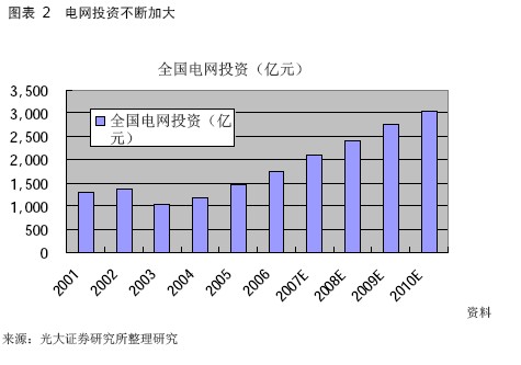 未來幾年電網(wǎng)投資不斷加大,主干網(wǎng)建設(shè)規(guī)模大幅增加。其中特高壓電網(wǎng)的建