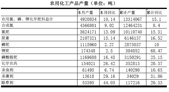 今年一季度,我國(guó)化肥總計(jì)產(chǎn)量1331.4萬(wàn)噸,同比增長(zhǎng)15.1%。三月份產(chǎn)量492.1萬(wàn)噸,同比增長(zhǎng)10.1%。一季度氨肥同比增長(zhǎng)15.3%,其中尿素產(chǎn)量614.6萬(wàn)噸,同比增長(zhǎng)16.5%,三月份尿素 硝酸銨 碳素氫銨市場(chǎng)價(jià)個(gè)與去年同期持平。