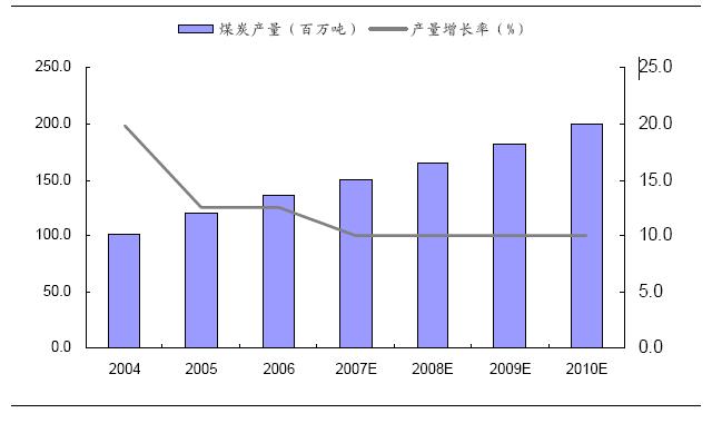 年-2010 年累計三年的商品煤產(chǎn)量將達到540 百萬噸。如果按此計劃順利推進,