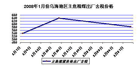 2008年1月份內(nèi)蒙古烏海地區(qū)煤炭價格整體呈上漲趨勢,價格走勢先抑后揚。上半月價格一路上揚,下半月呈回落態(tài)勢。