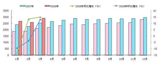 據(jù)最新生產(chǎn)統(tǒng)計(jì)數(shù)據(jù)顯示:2008年3月份,全國(guó)焦炭產(chǎn)量為2904.29萬(wàn)噸,較2月份的2571.33萬(wàn)噸增加了332.96萬(wàn)噸,環(huán)比增加了12.95%,本月比去年同期增加了378.78萬(wàn)噸,同比增長(zhǎng)15%。2008年1-3月份累計(jì)生產(chǎn)焦炭約7156.11萬(wàn)噸,與去年相比,增加了13.6%,再創(chuàng)歷史新高。參考圖4: