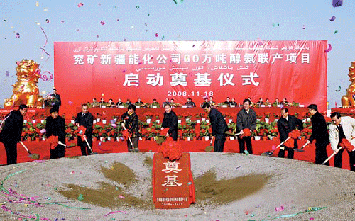 11月18日,總投資40.97億元的兗礦新疆能化公司60萬噸醇氨聯(lián)產(chǎn)項目在甘泉堡工業(yè)區(qū)奠基。項目建設(shè)期為32個月,建成后將填補新疆沒有以煤為原料生產(chǎn)合成氨、尿素、甲醇大型企業(yè)的空白。
