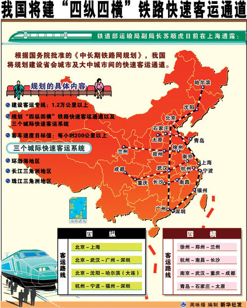 為了落實黨中央、國務院關于加快發(fā)展鐵路的戰(zhàn)略部署和要求,鐵道部從適應經濟社會發(fā)展大局出發(fā),在國家批準的綜合交通規(guī)劃框架下,邀請路內外專家和國家有關部門、各省區(qū)市,多次組織論證會,形成了《中長期鐵路網規(guī)劃》調整方案,得到了國家的批準。這對早日建成完善發(fā)達的鐵路網、促進經濟社會又好又快發(fā)展、為全面建設小康社會提供可靠運力保障,具有重要意義。不久的將來,在中國遼闊的版圖上,許多像京津城際一樣的現(xiàn)代化鐵路將陸續(xù)建成,“人便其行、貨暢其流”的運輸環(huán)境將變成現(xiàn)實。