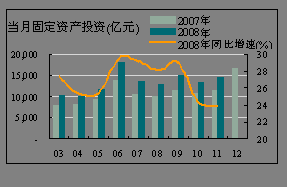 11月城鎮(zhèn)固定資產(chǎn)投資為14,425.07億元,同比增長(zhǎng)23.81%,比10月份同比增長(zhǎng)率下降了0.5百分點(diǎn),止住了此前同比增速迅速下滑的趨勢(shì)。中央加大投資以來(lái),個(gè)別先期安排的投資項(xiàng)目推動(dòng)作用開始顯現(xiàn)。