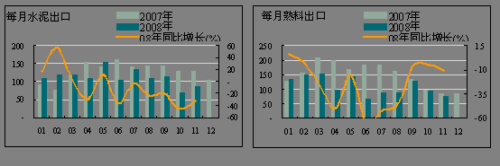 水泥與熟料出口與上年相比仍差距較大,但水泥與上月相比略有回暖,熟料較上月繼續(xù)回落。