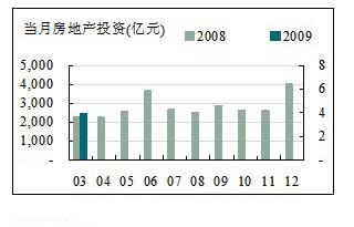 1~3月份房地產(chǎn)投資額為4880.29億元,同比增長(zhǎng)4.10%,較2008年同期增速回落了28.2百分點(diǎn),但與上月增速相比,提高3個(gè)百分點(diǎn)。3月份當(dāng)月完成房地產(chǎn)投資額2482.14億元,同比增長(zhǎng)7.27%。似出現(xiàn)房地產(chǎn)回暖跡象,但仍有待時(shí)間的考證。