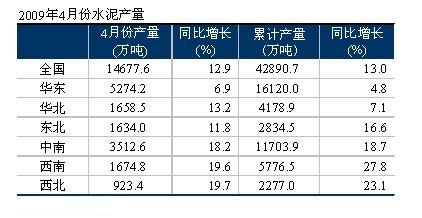4月份華東地區(qū)水泥產(chǎn)量5,274萬(wàn)噸,同比增長(zhǎng)6.9%,扭轉(zhuǎn)了3月份水泥產(chǎn)量同比負(fù)增長(zhǎng)的狀況;累計(jì)實(shí)現(xiàn)水泥產(chǎn)量16,120萬(wàn)噸,同比增長(zhǎng)4.8%。