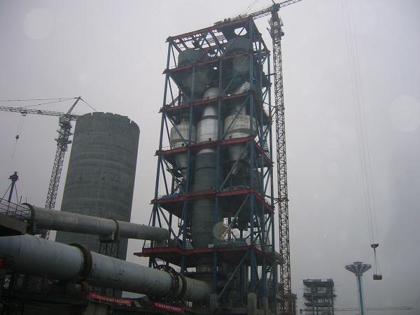 五期工程窯尾框架吊裝的塔吊是租賃的一臺舊塔吊,自從7月4日開始投入使用就故障頻繁,項目部克服因塔吊故障造成的影響、克服四川多雨天氣的影響、克服甲方供貨不及時等多方面的困難,精心組織施工。為在國慶前完成封頂任務(wù),向祖國母親的60華誕獻(xiàn)禮,峨勝項目部全體員工爭分奪秒,在注重進(jìn)度的同時也狠抓安全和質(zhì)量,短短的77天有效工期內(nèi)就完成了這一艱巨任務(wù)。