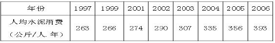 據(jù)筆者掌握的資料,近10 年全球人均水泥消費(fèi)如下: