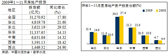 西南地區(qū)的華東、中南地區(qū)占全國(guó)房地產(chǎn)投資比重有所下降,分別下降了1.1和0.7個(gè)百分點(diǎn);華北、東北地區(qū)略有上升;西南、西北地區(qū)基本與去年持平。