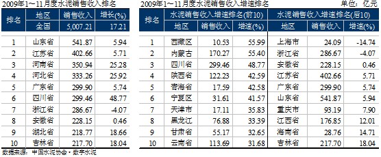 而受西部投資增大和四川災(zāi)后重建的拉動(dòng),增速較高的地區(qū)幾乎都集中在西南、西北地區(qū)。其中增加明顯的省份分別是內(nèi)蒙古、四川、陜西:內(nèi)蒙古實(shí)現(xiàn)銷售收入170.27億元,同比增長(zhǎng)55.4%;四川省實(shí)現(xiàn)銷售收入299.5億元,同比增長(zhǎng)48.77%;陜西省實(shí)現(xiàn)銷售收入122.2億元,同比增長(zhǎng)42.6%。