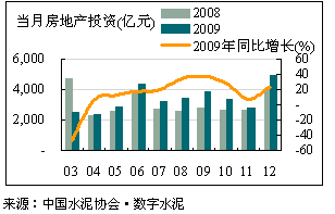 2009年我國完成房地產(chǎn)開發(fā)投資36,231.71億元,比上年增長16.1%,增速比1~11 月回落1.7 個(gè)百分點(diǎn)。12 月當(dāng)月房地產(chǎn)投資完成4,960.79億元,同比增長22.97%。