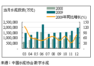 ——1~12月份,全國水泥行業(yè)累計(jì)投資額為17,007,241萬元,同比增長61.75%,當(dāng)月水泥投資額為1,951,187萬元,同比增長了78.48%;