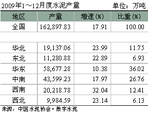 12月發(fā)布的水泥行業(yè)經(jīng)濟(jì)運(yùn)行數(shù)據(jù)顯示,2009年水泥行業(yè)圓滿收官: