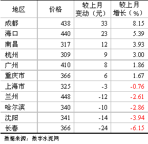 價(jià)格增幅最大的是成都地區(qū),上漲33元/噸,另業(yè)內(nèi)感到欣慰的是杭州地區(qū)的價(jià)格在12月也有所上調(diào),價(jià)格回升到300元/噸以上。