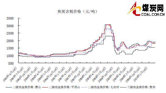 山西地區(qū)臨汾二級(jí)冶金焦車板含稅價(jià)1850元/噸;河津二級(jí)1850,為車板含稅價(jià);長(zhǎng)治二級(jí)車板含稅1850,準(zhǔn)一級(jí)車板含稅1900元 /噸;太原二級(jí)冶金焦車板價(jià)格為1870元/噸;介休一級(jí)冶金焦1850,二級(jí)冶金焦1750,為出廠含稅價(jià);晉城地區(qū)二級(jí)冶金焦1800,一級(jí)冶金焦1850,為出廠含稅價(jià)。河南濟(jì)源地區(qū)二級(jí)冶金焦車板含稅價(jià)1850,安陽(yáng)地區(qū)二級(jí)冶金焦出廠含稅價(jià)1800元/噸左右;平頂山地區(qū)大型主導(dǎo)焦化企業(yè)二級(jí)冶金焦出廠含稅價(jià)1850元/噸左右。河北地區(qū)邢臺(tái)二級(jí)冶金焦到廠含稅價(jià)2020元/噸;邯鄲準(zhǔn)一級(jí)到廠價(jià)1980-2000元/噸,二級(jí)冶金焦含稅出廠價(jià)在1900-1920元/噸;唐山二級(jí)冶金焦到廠價(jià)1950/噸。安徽淮南、淮北地區(qū)二級(jí)冶金焦含稅價(jià)格1900-1950元/噸。四川攀枝花地區(qū)二級(jí)冶金焦主流價(jià)格在1750元/噸。貴州六盤水地區(qū)二級(jí)冶金焦出廠價(jià)格1800元/噸。山東淄博二級(jí)冶金焦出廠含稅價(jià)1900元/噸。上海二級(jí)冶金焦采購(gòu)價(jià)格1970元/噸。
