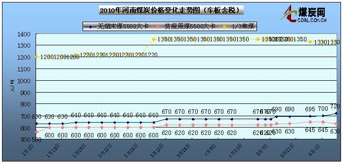 | 河南焦作 | 無(wú)煙原煤 | 5600大卡,硫≤0.8%,揮發(fā)分≤7% | 700-750 | - | 車(chē)板含稅 | |
