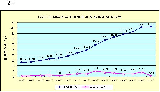 在國家關(guān)于“保增長、調(diào)結(jié)構(gòu)、促改革、惠民生”一系列政策方針指引下,2010年我國經(jīng)濟(jì)發(fā)展對水泥的供給仍會(huì)繼續(xù)保持較旺盛的需求,全國水泥產(chǎn)量也會(huì)繼續(xù)保持增產(chǎn),提高水泥散裝率的預(yù)期不容樂觀,實(shí)現(xiàn)“十一五”水泥散裝率55%的預(yù)期指導(dǎo)性目標(biāo)已不現(xiàn)實(shí)。