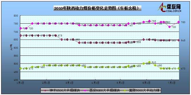 | 黃陵 | 動力煤 | 5000 | 32 | 26-32 | 0.5 | 470 | 車板價 | ||