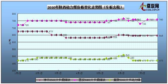 | 黃陵 | 動(dòng)力煤 | 5000 | 32 | 26-32 | 0.5 | 470 | 車板價(jià) | ||