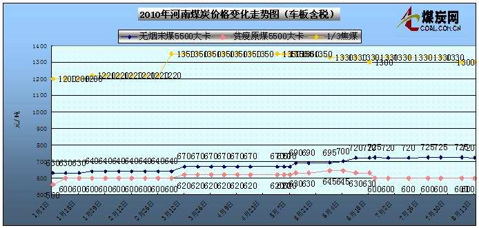 | 河南焦作 | 無煙原煤 | 5600大卡,硫≤0.8%,揮發(fā)分≤7% | 725 | - | 車板含稅 | |