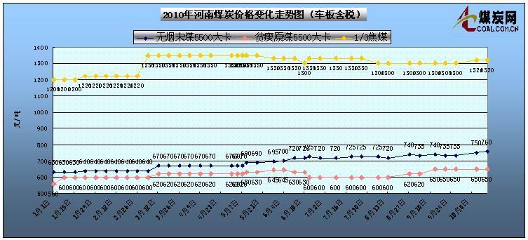 | 河南焦作 | 無煙原煤 | 5600大卡,硫≤0.8%,揮發(fā)分≤7% | 760 | - | 車板含稅 | |