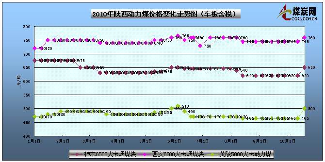 | 黃陵 | 動力煤 | 5000 | 32 | 26-32 | 0.5 | 490 | 車板價 | ||