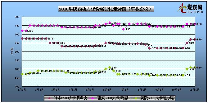 | 黃陵 | 動力煤 | 5000 | 32 | 26-32 | 0.5 | 510 | 車板價 | ||