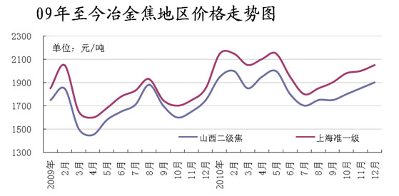 圖3:2009-2010年12月冶金焦地區(qū)均價(jià)走勢(shì)圖