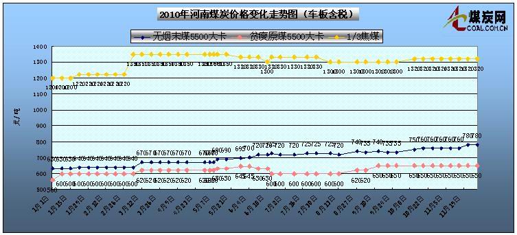 | 河南焦作 | 無煙原煤 | 5600大卡,硫≤0.8%,揮發(fā)分≤7% | 760 | - | 車板含稅 | |