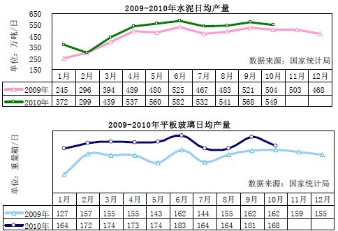 10 月份,建材市場(chǎng)繼續(xù)處于旺季,市場(chǎng)需求仍然旺盛,但受節(jié)能減排的影響,建材產(chǎn)品產(chǎn)量出現(xiàn)下降,兩者綜合作用,建材產(chǎn)品價(jià)格尤其是水泥價(jià)格出現(xiàn)大幅度的上漲。