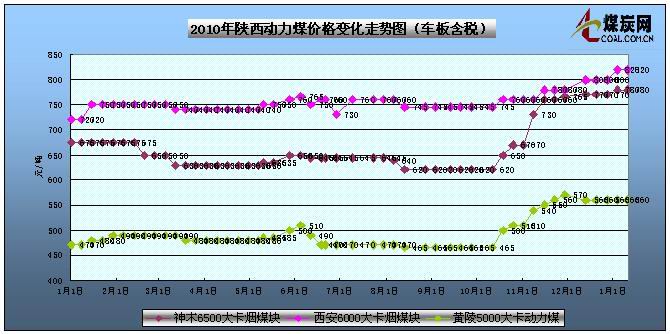 | 黃陵 | 動(dòng)力煤 | 5000 | 32 | 26-32 | 0.5 | 560 | 車板價(jià) | ||