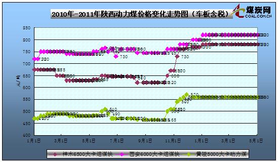 | 黃陵 | 動(dòng)力煤 | 5000 | 26~32 | 0.5 | 32 | 560 | 車(chē)板價(jià) | |||
