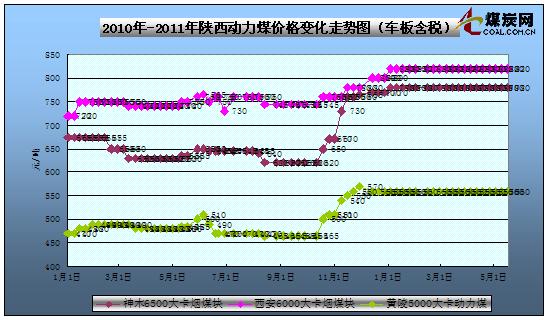 | 黃陵 | 動力煤 | 5000 | 26~32 | 0.5 | 32 | 560 | 車板價 | |||