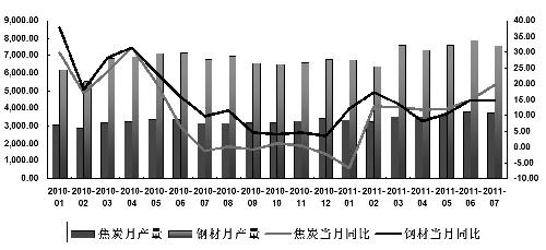 焦炭的成本90%由焦煤價(jià)格決定,其他人工、燃料動(dòng)力、折舊、輔料等占10%。我國(guó)是一個(gè)富煤大國(guó),但煉焦煤的儲(chǔ)量并不豐富,目前我國(guó)焦煤對(duì)外依存度約為10%。據(jù)中國(guó)煤炭工業(yè)協(xié)會(huì)的預(yù)測(cè),2011年焦煤進(jìn)口量將為4900萬(wàn)噸左右,進(jìn)口依存度將不會(huì)超過(guò)12%,因此,焦炭的成本主要取決于國(guó)內(nèi)焦煤的價(jià)格。另有統(tǒng)計(jì)表明,動(dòng)力煤與焦煤的相關(guān)系數(shù)高達(dá)0.96,所以動(dòng)力煤價(jià)格的變化也極具參考意義。