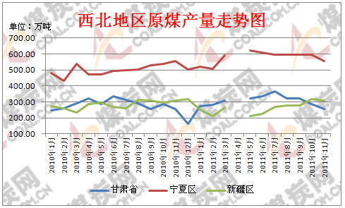 (一)2011年西北地區(qū)原煤產(chǎn)量情況