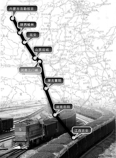 記者通過(guò)國(guó)家發(fā)改委的官方網(wǎng)站看到,新近批復(fù)的“蒙西鐵路”建設(shè)方案中,該線路北起東烏鐵路浩勒?qǐng)?bào)吉站,途經(jīng)內(nèi)蒙古自治區(qū)鄂爾多斯地區(qū)、陜西省榆林、延安地區(qū)、山西省運(yùn)城地區(qū)、河南省三門(mén)峽、南陽(yáng)地區(qū)、湖北省襄陽(yáng)、荊門(mén)、荊州地區(qū)、湖南省岳陽(yáng)地區(qū),終點(diǎn)到達(dá)江西省吉安,線路全長(zhǎng)1837公里,總投資高達(dá)1598億元,已經(jīng)被列入鐵路“十二五”建設(shè)規(guī)劃中。據(jù)省政府相關(guān)部門(mén)的有關(guān)人士透露,“蒙華鐵路”項(xiàng)目是今年1月份批復(fù)的。國(guó)家發(fā)改委給“蒙華鐵路”的基本功能定位是,連接蒙陜甘寧能源“金三角”地區(qū)與鄂湘贛等華中地區(qū),是“北煤南運(yùn)”新的國(guó)家戰(zhàn)略運(yùn)輸通道。據(jù)了解,“蒙華鐵路”最遲將于年底開(kāi)工建設(shè)。