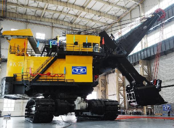 當日,世界上首臺規(guī)格最大、技術(shù)性能最先進、生產(chǎn)能力最高的WK-75型礦用挖掘機,在山西太重集團公司正式下線。這臺從設(shè)計到制造完全國產(chǎn)化的挖掘機,采用了世界先進的智能化控制技術(shù)、運行狀態(tài)自動檢測和故障診斷、能量回饋等技術(shù),可滿足國內(nèi)外現(xiàn)代化大型露天礦山高效、低耗、智能化和綠色開采的需要。據(jù)介紹,WK-75型礦用挖掘機總長37.5米,寬17.3米,從履帶到頂部高達23.5米,總重量近2000噸,其一個月的煤炭開采量可達到500萬噸,相當于一座大型煤礦一年的產(chǎn)量。WK-75型礦用挖掘機的成功下線,標志著我國在重大裝備領(lǐng)域?qū)崿F(xiàn)了從“跟隨”到“引領(lǐng)”質(zhì)的飛躍。