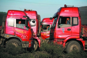 10點(diǎn)30分,記者驅(qū)車來到京藏高速張家口服務(wù)站1公里處,高速下的207國道被堵得嚴(yán)嚴(yán)實(shí)實(shí),馬路上三條道排滿了運(yùn)煤大貨車,記者停車翻越護(hù)欄來到橋下,腳踩之處,灰塵厚約3厘米。“前面就是萬全站,大貨限制上京藏高速!睋(jù)一名馮師傅介紹,他的車上拉有39噸煤,19日從內(nèi)蒙古東勝出發(fā),經(jīng)110國道,22日晚12時到達(dá)這條堵塞路段,“10多個小時,到現(xiàn)在也就前進(jìn)了2公里。你往北走,后面堵了至少七八公里,后面還有更多煤車跟上來。”