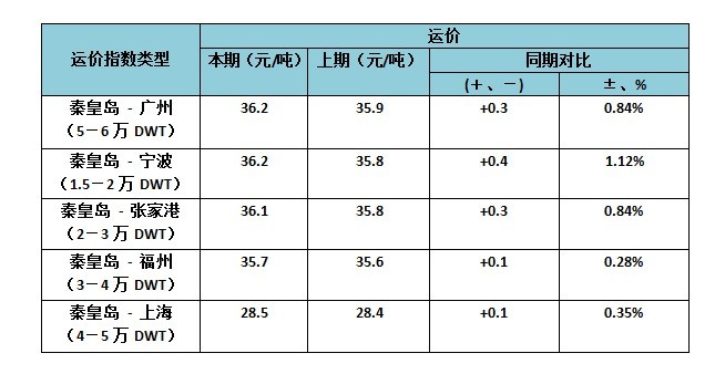 此表包含中國沿海(散貨)運價指數(shù)-煤炭(秦皇島港航線)運價指數(shù)的本期和上期數(shù),以及同比增減。