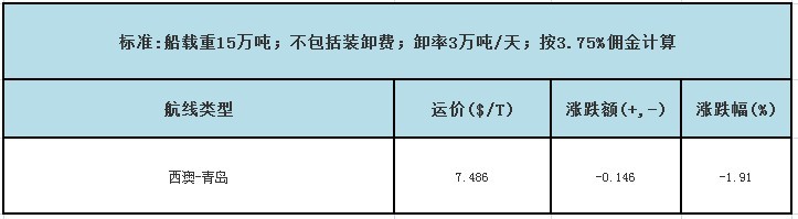 運費匯總如下表西澳-青島運費匯總所示: