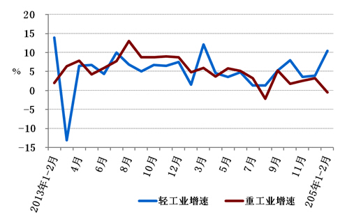 圖2: 2013年以來分月輕、重工業(yè)用電量增速情況