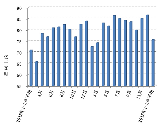 1-3月份,全國發(fā)電設(shè)備累計平均利用小時954小時,同比下降84小時,降幅比2014年同期擴大48小時。