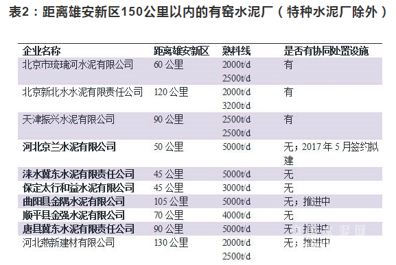 據(jù)公開資料,水泥窯協(xié)同處置已經(jīng)形成了以華新(355.62元/噸,0%)、金隅(380元/噸,0%)、海螺(323.12元/噸,0.25%)為代表的三類技術(shù)處理類型。華新可在水泥廠建預(yù)處理設(shè)施,也可在距離水泥廠外150公里陸運(yùn)范圍內(nèi)建立預(yù)處理廠,金隅、海螺一般建在水泥廠,以處理周邊城鎮(zhèn)的垃圾為主。綜合來看,筆者認(rèn)為,雄安新區(qū)垃圾或者污泥的運(yùn)距不宜超過150公里,。根據(jù)中國水泥研究院數(shù)據(jù),距離雄安新區(qū)150公里以內(nèi)的具有熟料生產(chǎn)線的水泥廠(特種水泥廠除外)有10家,兩家位于北京市、一家位于天津市,7家位于河北省。其中,北京市的兩家已經(jīng)具有協(xié)同處置能力,基本是處置本市垃圾,雄安新區(qū)的垃圾或污泥運(yùn)送北京市的概率極低;天津振興水泥也建成了污泥示范線;河北的7家企業(yè)中尚沒有協(xié)同處置能力的企業(yè),但是京蘭、曲陽金隅、唐縣冀東(320.67元/噸,0.63%)、燕新建材正在推動協(xié)同處置項(xiàng)目的上馬,不過多以協(xié)同處置危險廢物為主。另外,根據(jù)環(huán)保部《水泥窯協(xié)同處置固體廢物污染防治技術(shù)政策》要求,“新建、改建或擴(kuò)建處置其他固體廢物的水泥企業(yè),應(yīng)選擇單線設(shè)計熟料生產(chǎn)規(guī)模 3000 噸/日及以上水泥窯”,因而除燕新建材外其余6家企業(yè)均有機(jī)會。